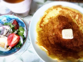 米粉のホットケーキミックスを見つけたので、朝食に作ってみました♪